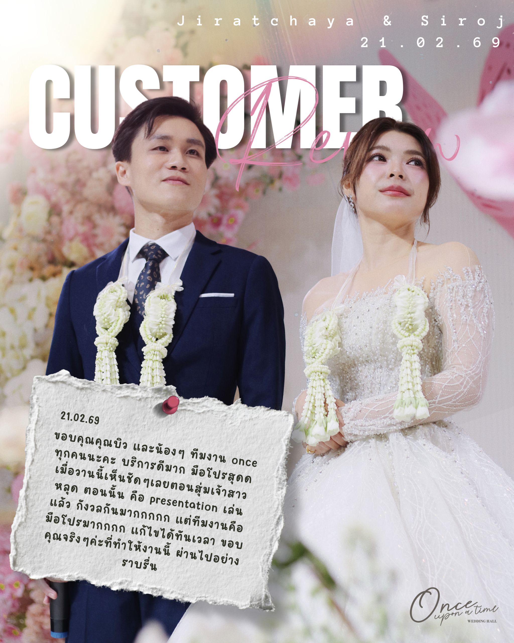 #reviewonceuponatimeขอบคุณคุณบิว และน้องๆ ทีมงาน once ทุกคนนะคะ บริการดีมาก มือโปรสุดด เมื่อวานนี้เห็นชัดๆเลยตอนสุ่มเจ้าสาวหลุด ตอนนั้น คือ presentation เล่นแล้ว กังวลกันมากกกกก แต่ทีมงานคือมือโปรมากกกก แก้ไขได้ทันเวลา ขอบคุณจริงๆค่ะที่ทำให้งานนี้ ผ่านไปอย่างราบรื่น ขอบคุณรีวิวจากคุณน้ำตาล & คุณฟอร์ชนะครับ ดีใจที่ Once upon a time ได้เป็นส่วนหนึ่งของวันสำคัญของทั้งคู่ ขอบคุณที่ไว้วางใจให้เราดูแลวันสำคัญในชีวิตนะครับ …………………………………………………….ติดต่อสอบถาม หรือแวะมาชมสถานที่จริงได้เลยนะครับ…………………………………………………….ติดต่อสอบถาม หรือแวะมาชมสถานที่จริงได้เลยนะครับFB : Once upon a timeWebsite : www.onceweddingvenue.comLine@ : @oncebangsaenIG : once.weddinghallTel : 083-820-8645 (ฝ่ายขายบิว)092-631-1826 (ฝ่ายขายนิ้ง)083-801-9046 (ฝ่ายขายเอิร์น,ฝ่ายขายไอซ์ซี่)