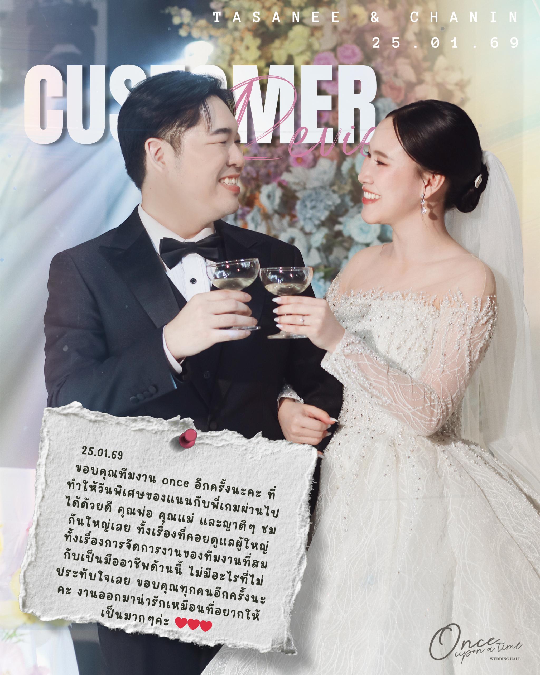 #reviewonceuponatime ขอบคุณทีมงาน once อีกครั้งนะคะ ที่ทำให้วันพิเศษของแนนกับพี่เกมผ่านไปได้ด้วยดี คุณพ่อ คุณแม่ และญาติๆ ชมกันใหญ่เลย ทั้งเรื่องที่คอยดูแลผู้ใหญ่ ทั้งเรื่องการจัดการงานของทีมงานที่สมกับเป็นมืออาชีพด้านนี้ ไม่มีอะไรที่ไม่ประทับใจเลย ขอบคุณทุกคนอีกครั้งนะคะ งานออกมาน่ารักเหมือนที่อยากให้เป็นมากๆค่ะ ❤️❤️❤️ ขอบคุณรีวิวจากคุณเเนน & คุณเกมนะครับ ดีใจที่ Once upon a time ได้เป็นส่วนหนึ่งของวันสำคัญของทั้งคู่ ขอบคุณที่ไว้วางใจให้เราดูแลวันสำคัญในชีวิตนะครับ ……………………………………………………. ติดต่อสอบถาม หรือแวะมาชมสถานที่จริงได้เลยนะครับ FB : Once upon a time Website : www.onceweddingvenue.com Line@ : @oncebangsaen IG : once.weddinghall Tel : 083-820-8645 (ฝ่ายขายบิว) 092-631-1826 (ฝ่ายขายนิ้ง) 083-801-9046 (ฝ่ายขายเอิร์น,ฝ่ายขายไอซ์ซี่)