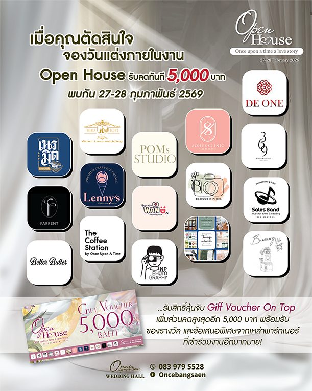 เตรียมตัวให้พร้อม…ช่วงเวลาสำคัญของชีวิตกำลังจะเริ่มขึ้น รวมพาร์ทเนอร์งานแต่งคุณภาพ พร้อมดีลพิเศษเฉพาะในงานที่จะทำให้งานแต่งของคุณ สมบูรณ์แบบยิ่งกว่าเดิม Once