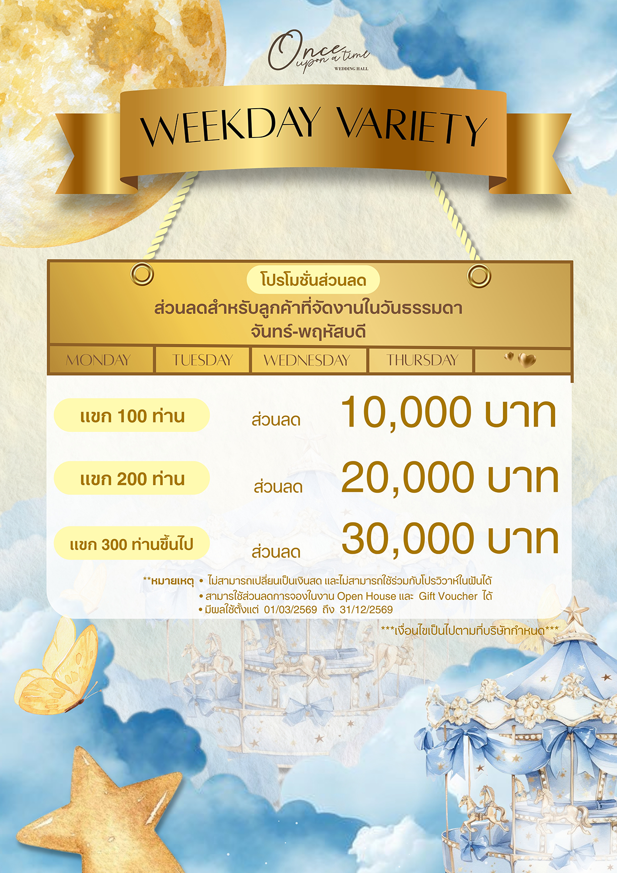 Weekday Variety โปรสุดคุ้มสำหรับคู่รักที่เลือกเปลี่ยนวันธรรมดาให้เป็นวันที่สุดแสนพิเศษ Once upon a